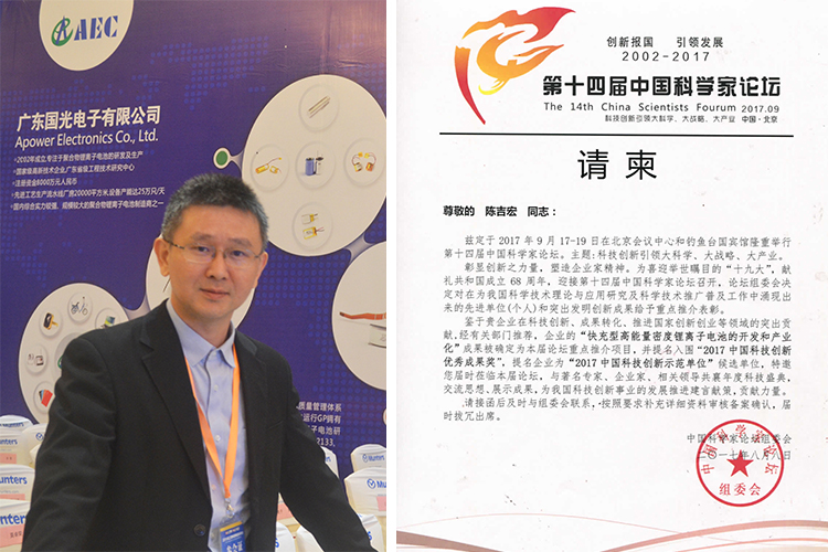 基于國光電子在科技創(chuàng )新、成果轉發(fā)、推進(jìn)國家創(chuàng )新創(chuàng )業(yè)等領(lǐng)域的突出貢獻,經(jīng)有關(guān)部門(mén)推薦,其“快充型高能量密度鋰離子電池的開(kāi)發(fā)與產(chǎn)業(yè)化”成果被確定為第十四屆中國科學(xué)家論壇重點(diǎn)推介項目,并提名入圍“2017年中國科技創(chuàng )新優(yōu)秀成果獎”,提名企業(yè)為“2017中國科技創(chuàng )新示范單位”候選單位。論壇特邀國光電子總經(jīng)理陳吉宏先生出席,與著(zhù)名專(zhuān)家、企業(yè)家、相關(guān)領(lǐng)導共襄年度科技盛典,交流思想,展示成果,為中國科技創(chuàng )新事業(yè)的發(fā)展推進(jìn)建言獻策,貢獻力量。