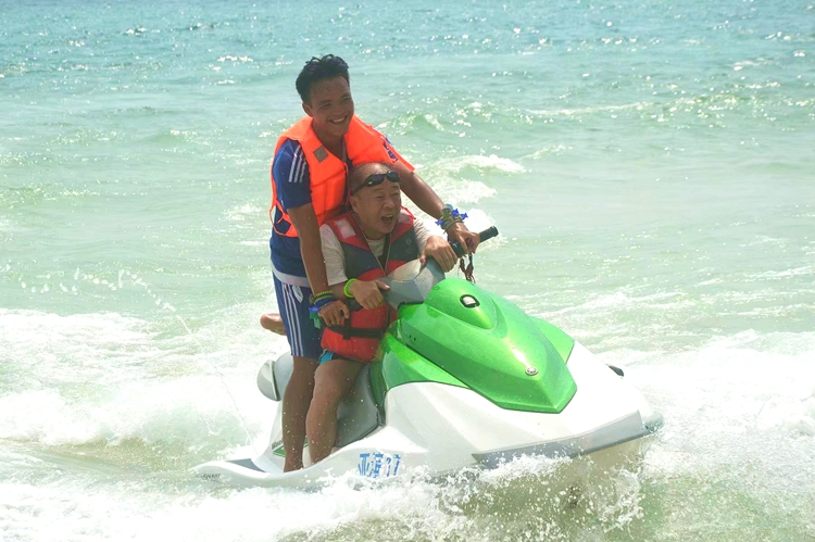 我們緊接著(zhù)行程的安排在海灘上排隊等候著(zhù)海上游樂(lè )項目,海天飛船、香蕉船、摩托艇等。海邊工作人員免費給游客們拍照,照片會(huì )已郵箱形式傳遞給各團隊,有的同事說(shuō)終于可以親臨大海有機會(huì )接觸海上娛樂(lè )項目了,以前都在電視上或者朋友圈看過(guò)朋友在玩海上娛樂(lè )項目,今天終于親身體驗了!經(jīng)過(guò)幾個(gè)項目玩完之后,伙伴們都奔向了沖浪區,撲向大海媽媽的懷抱,納喊聲、歡笑聲與海浪聲,組成了一支動(dòng)聽(tīng)的交響曲。